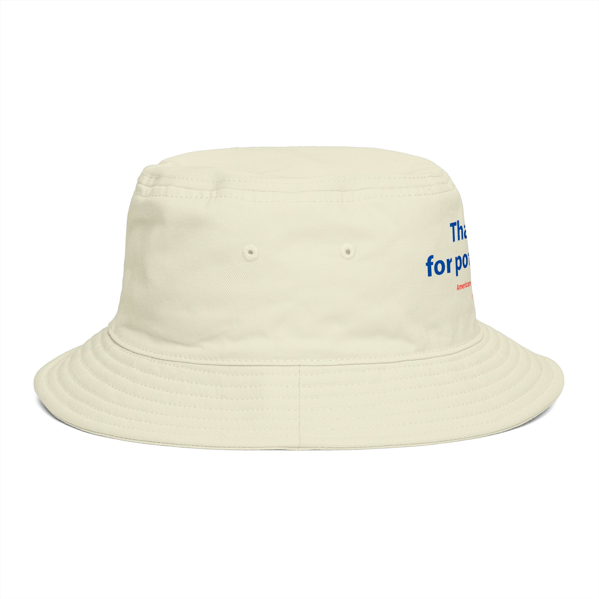 This cotton bucket hat carries a laid-back, slightly cheeky vibe — a sun-shielding staple with a relaxed silhouette and a subtle embroidered message across the front. The soft, tightly spun cotton feels smooth against the head while the reinforced brim keeps shape and keeps sun out of your eyes. It’s the kind of hat you reach for on slow afternoons at outdoor markets, at music festivals, or when you want a low-key statement while wandering the city. The one-size fit and tear-away label make it comfortable for long wear; the durable fabric stands up to repeated use and printing detail. Wear it with worn denim, oversized tees, or layered summer looks to add a playful, confident edge to your outfit.